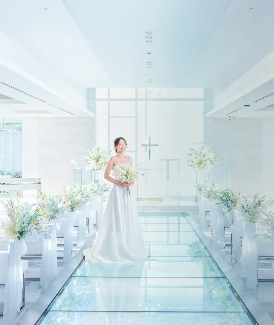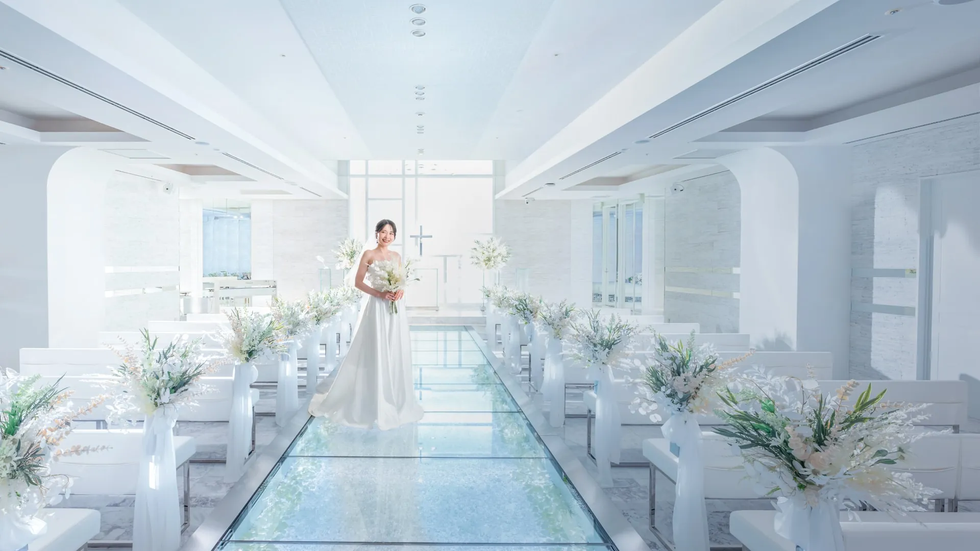 白のチャペルは、幸せな花嫁を美しく映す誓いの舞台です。