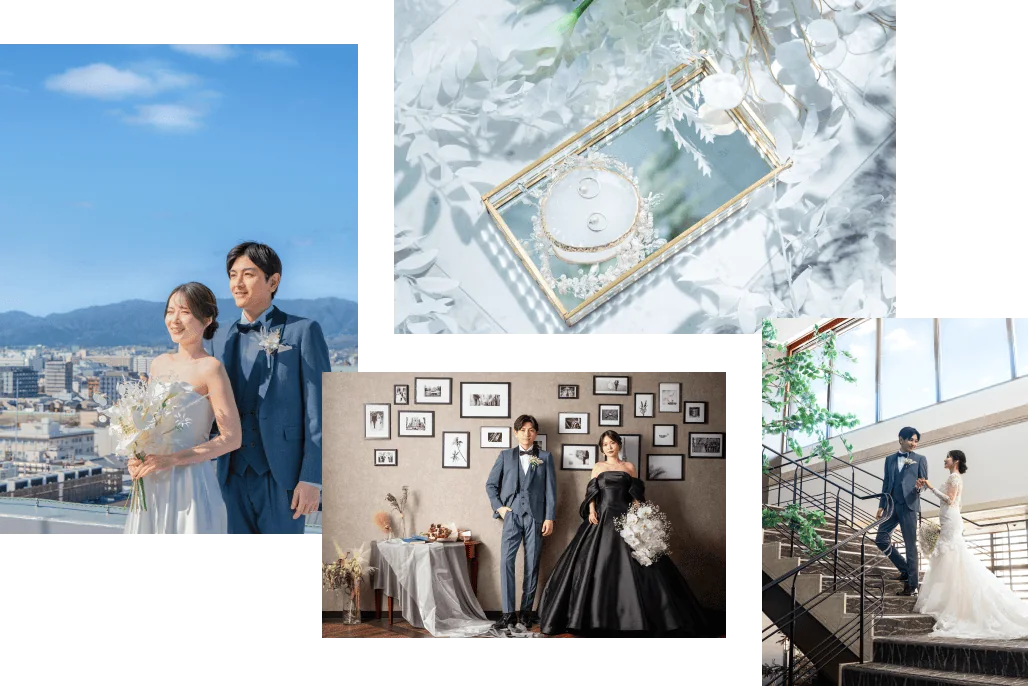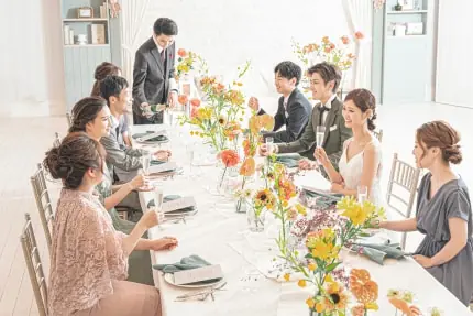 - 約半年前程からお電話やメールなどで担当プランナーが細かくお打合わせさせていただきます。写真やビデオなど、前日実際にサンプルを見てから決めていただいても間に合います。(リモート打合せ)当会場では、県外から毎年150組以上のカップルがいらっしゃいます。スタッフもリモート打合せも慣れておりますので、どうぞご安心ください。